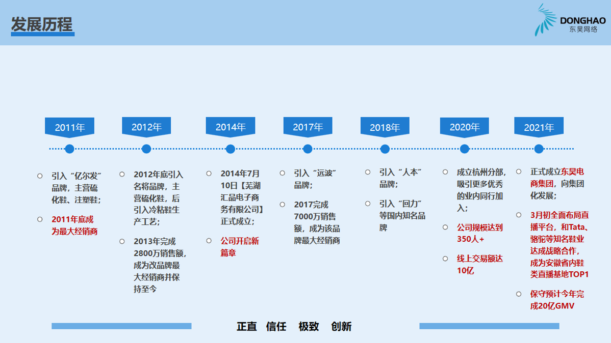 蕪湖東昊網(wǎng)絡(luò)科技有限公司,成立于 2014 年,是一家以互聯(lián)網(wǎng)平臺(tái)銷售為核心的電子商務(wù)運(yùn)營(yíng)商,公司成立以來,始終專注于休閑運(yùn)動(dòng)鞋的互聯(lián)網(wǎng)銷售業(yè)務(wù),產(chǎn)品線覆蓋硫化鞋、注塑鞋、冷粘鞋,在互聯(lián)網(wǎng)二級(jí)類目單品牌排名前三,綜合成績(jī)排名TOP1;